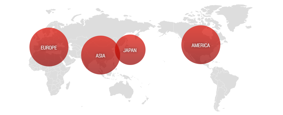 반도 그룹은 세계 수십개국에 생산·판매 거점을 둔 폭 넓은 글로벌 네트워크를 구축하여, 세계 4극 체제(일본, 아시아, 아메리카, 유럽)에서