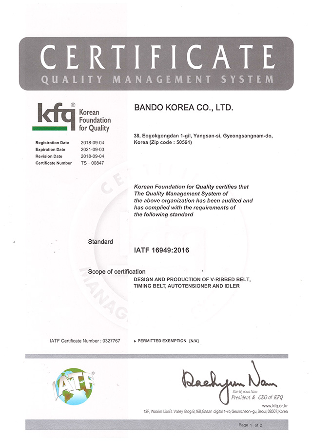 バンドーコリアは国内の産業発展と未来へ踏み出す同伴者として、皆様と共に参ります。